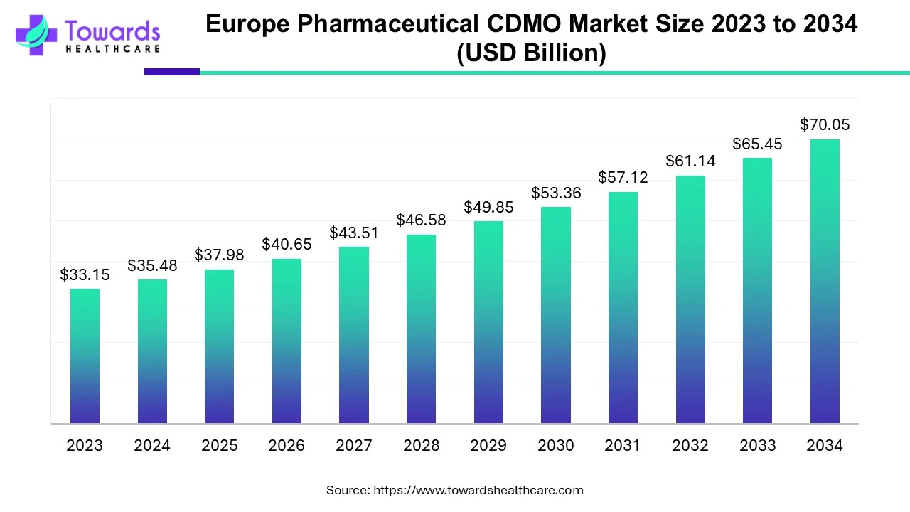 Europe Pharmaceutical CDMO Market Size Expected to Reach USD 70.05 Billion by 2034